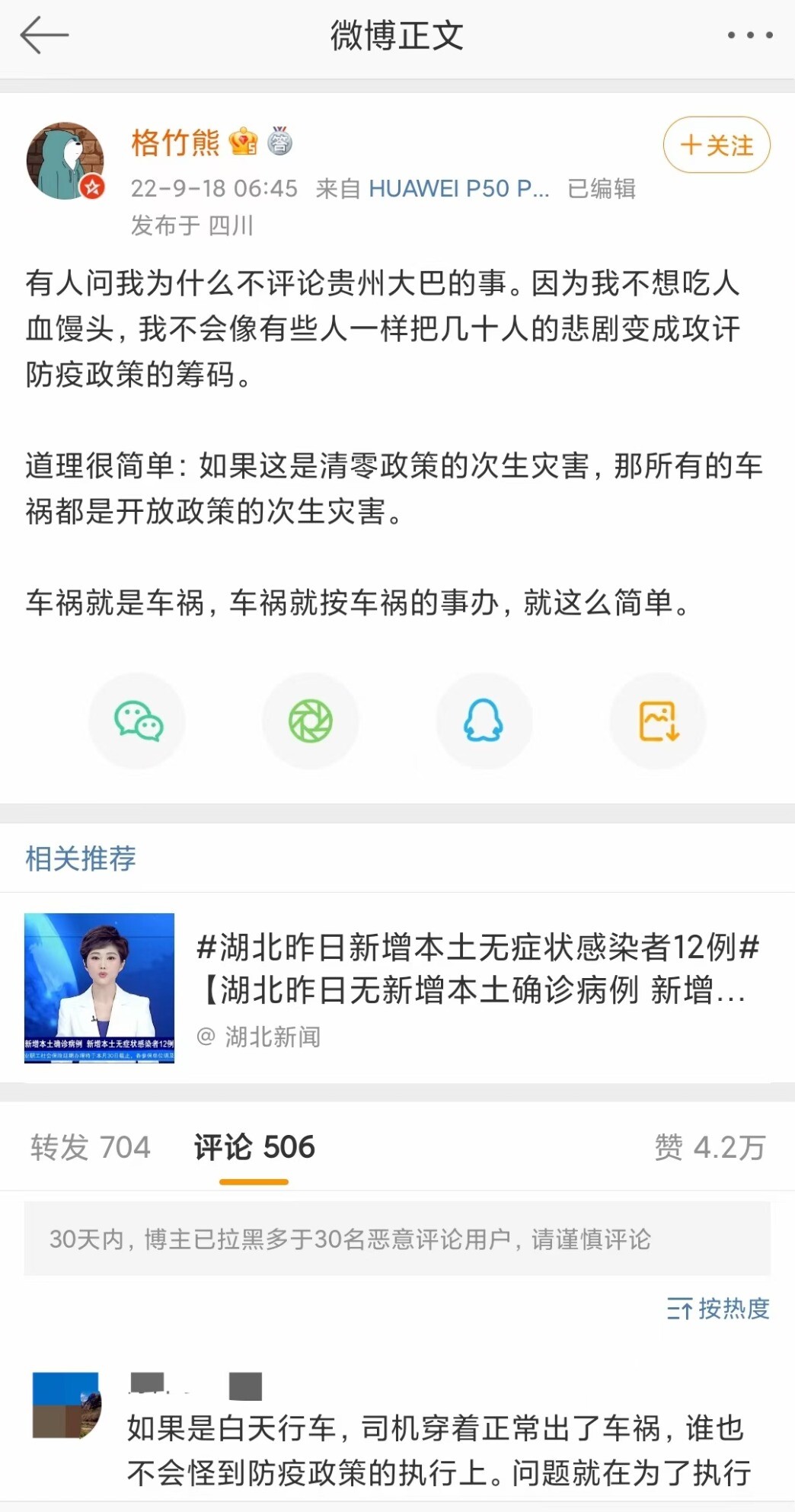 胡锡进说贵州车祸是“生产经营事故”。