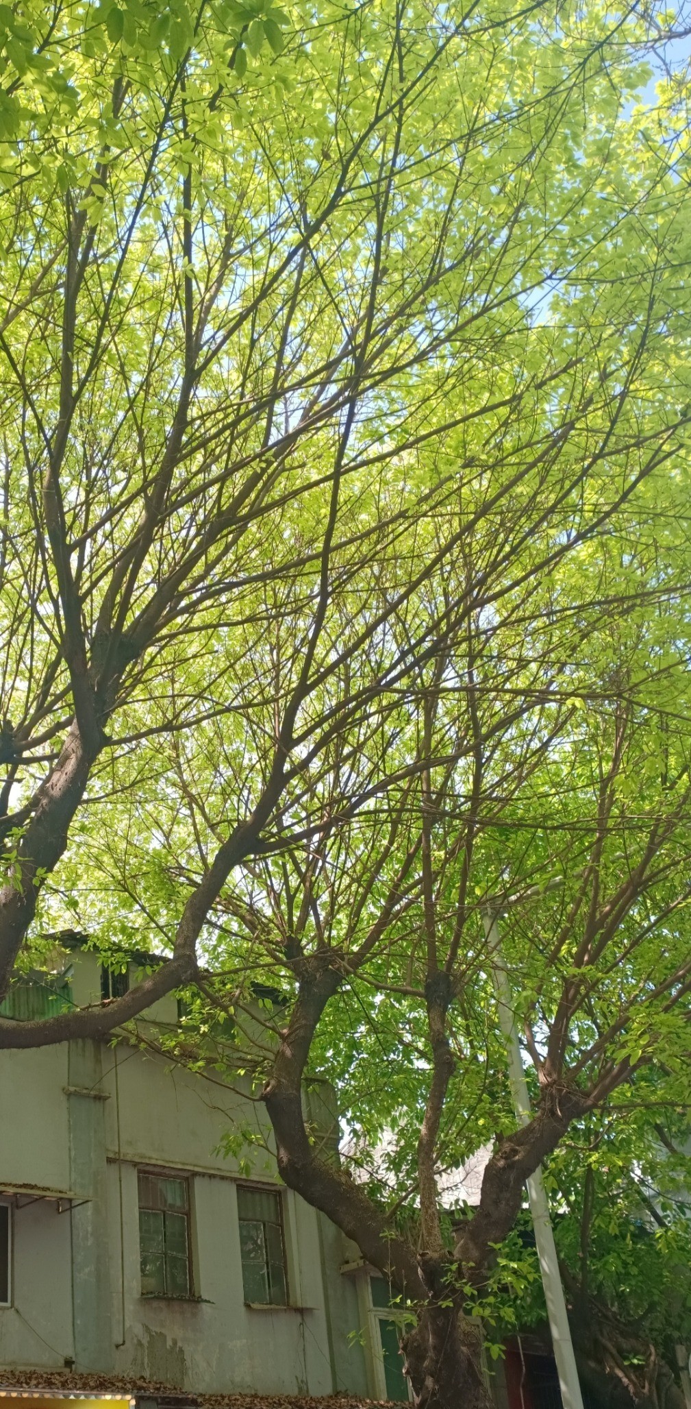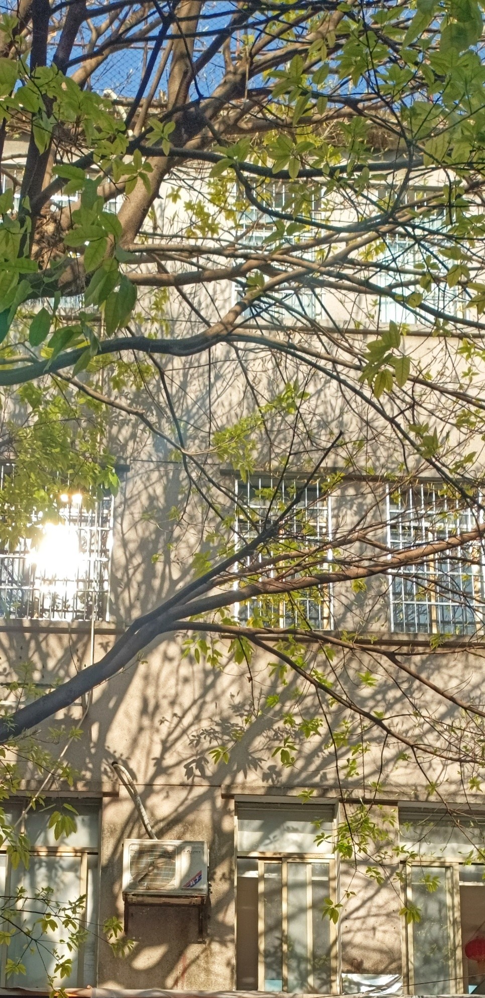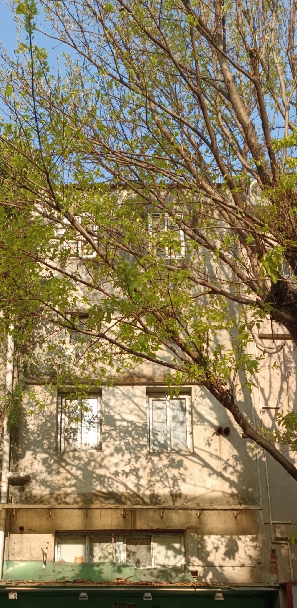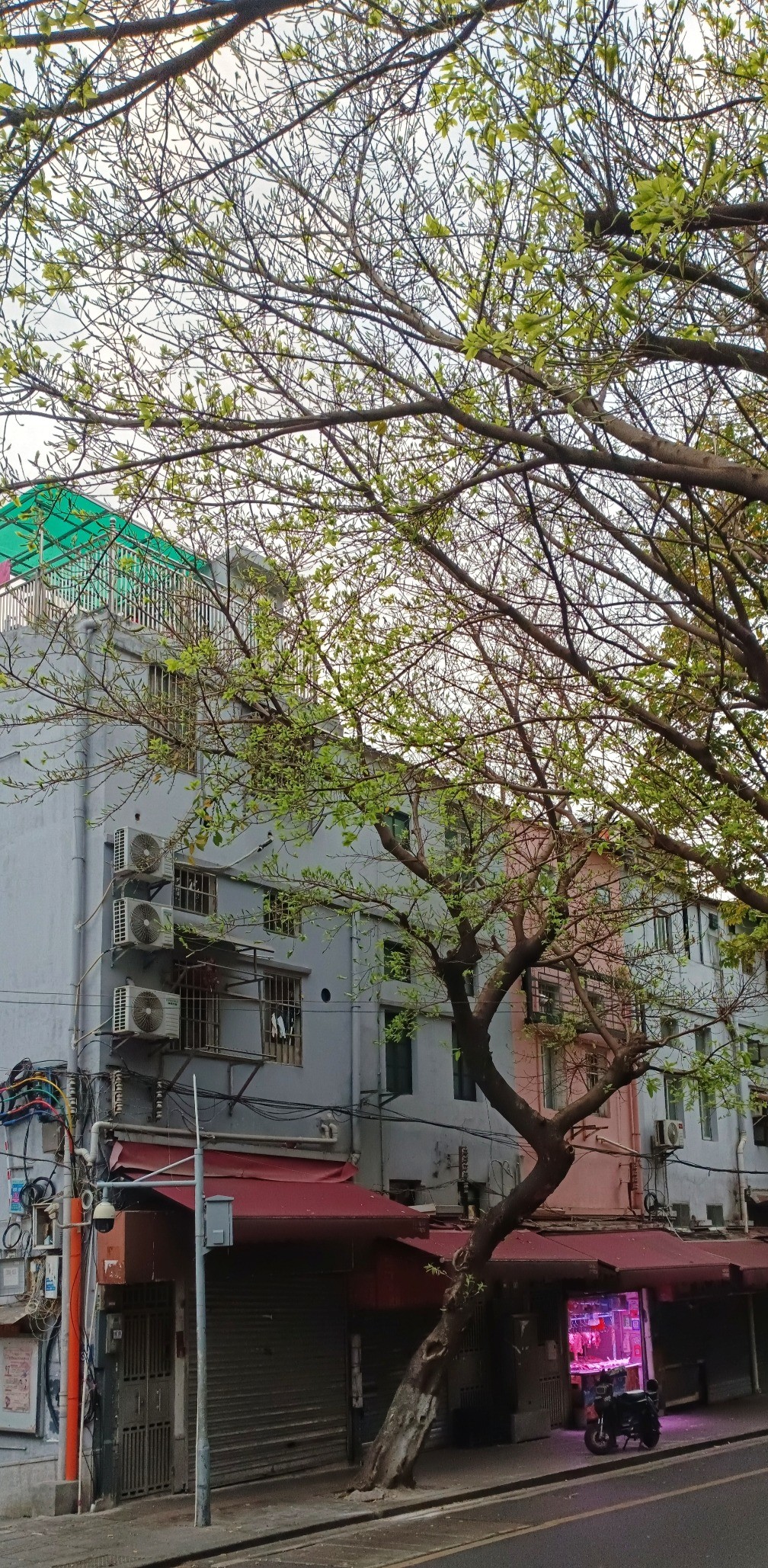 春天的傍晚,走进一个老旧小区,去看一棵白花山桃。