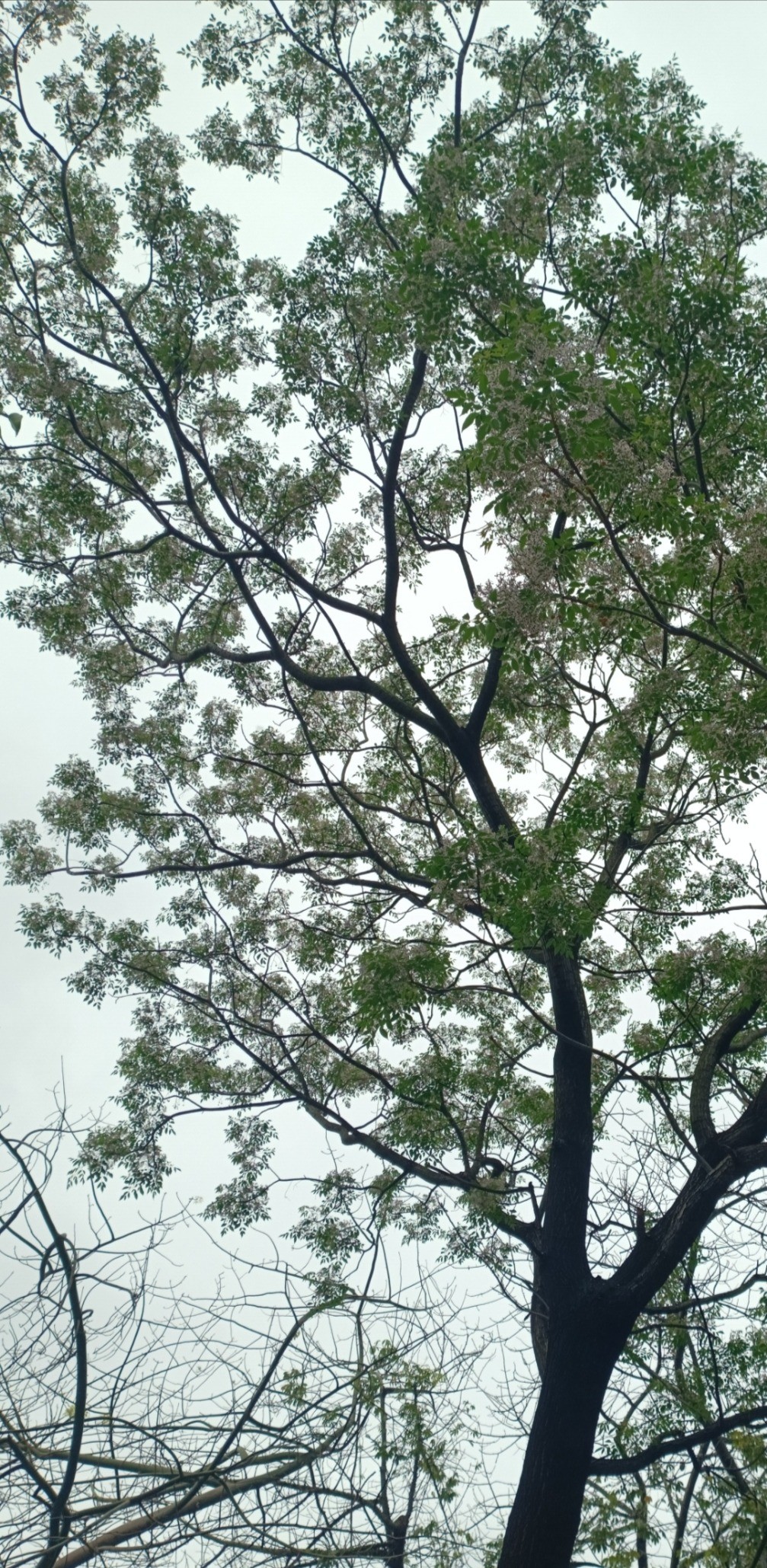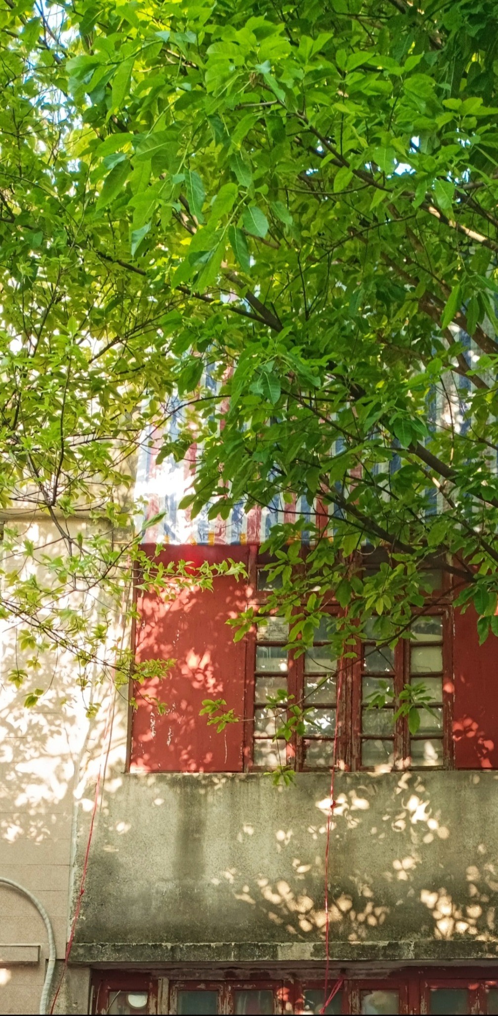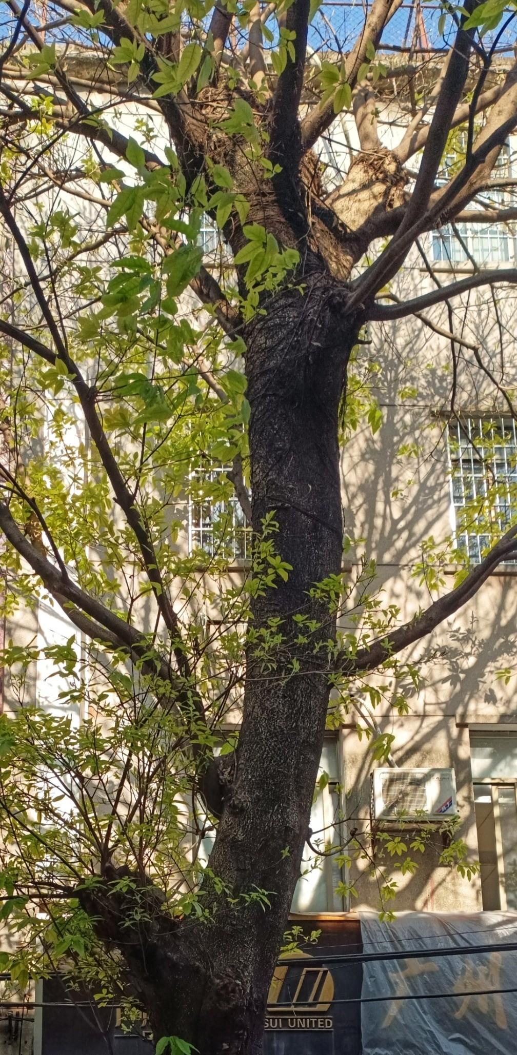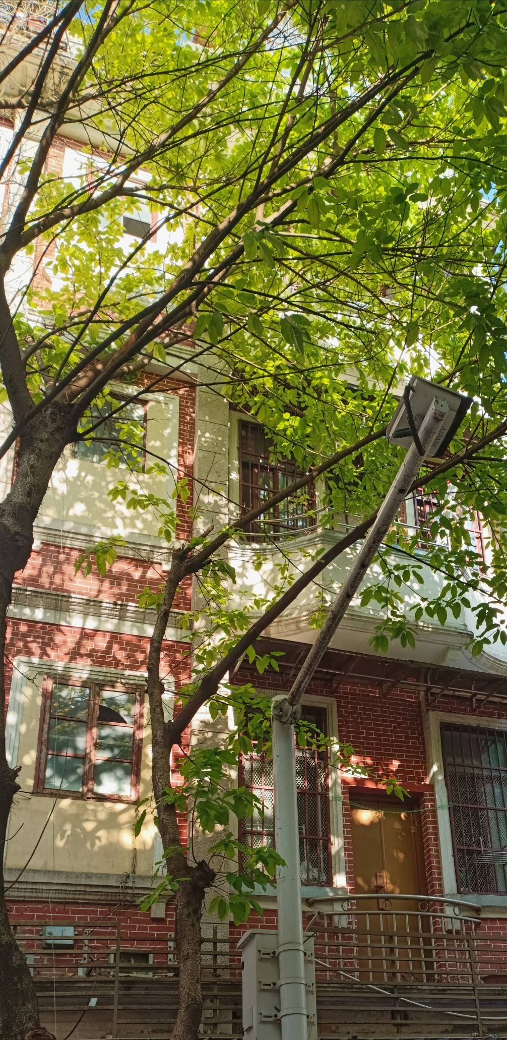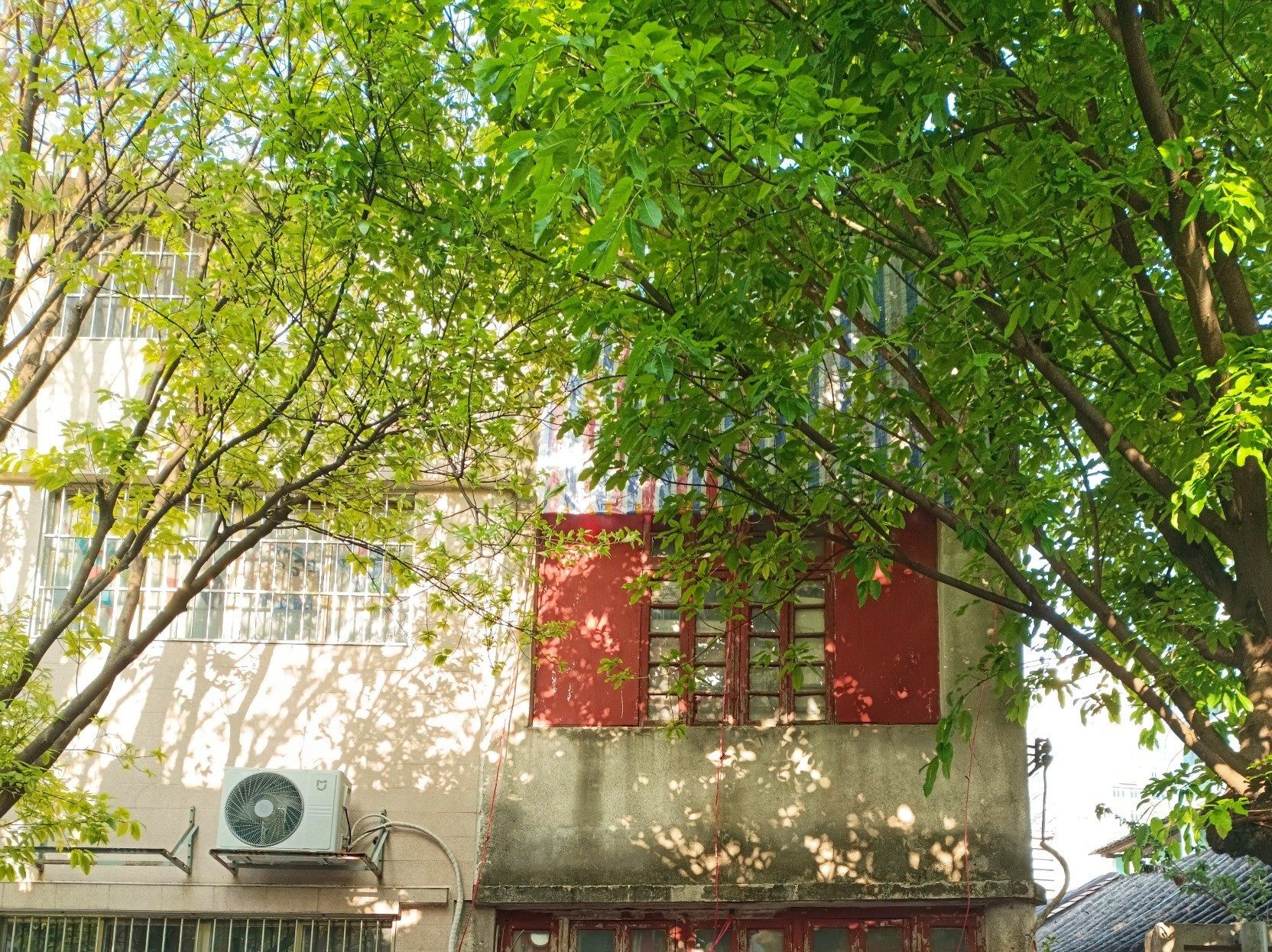 春天的傍晚,走进一个老旧小区,去看一棵白花山桃。