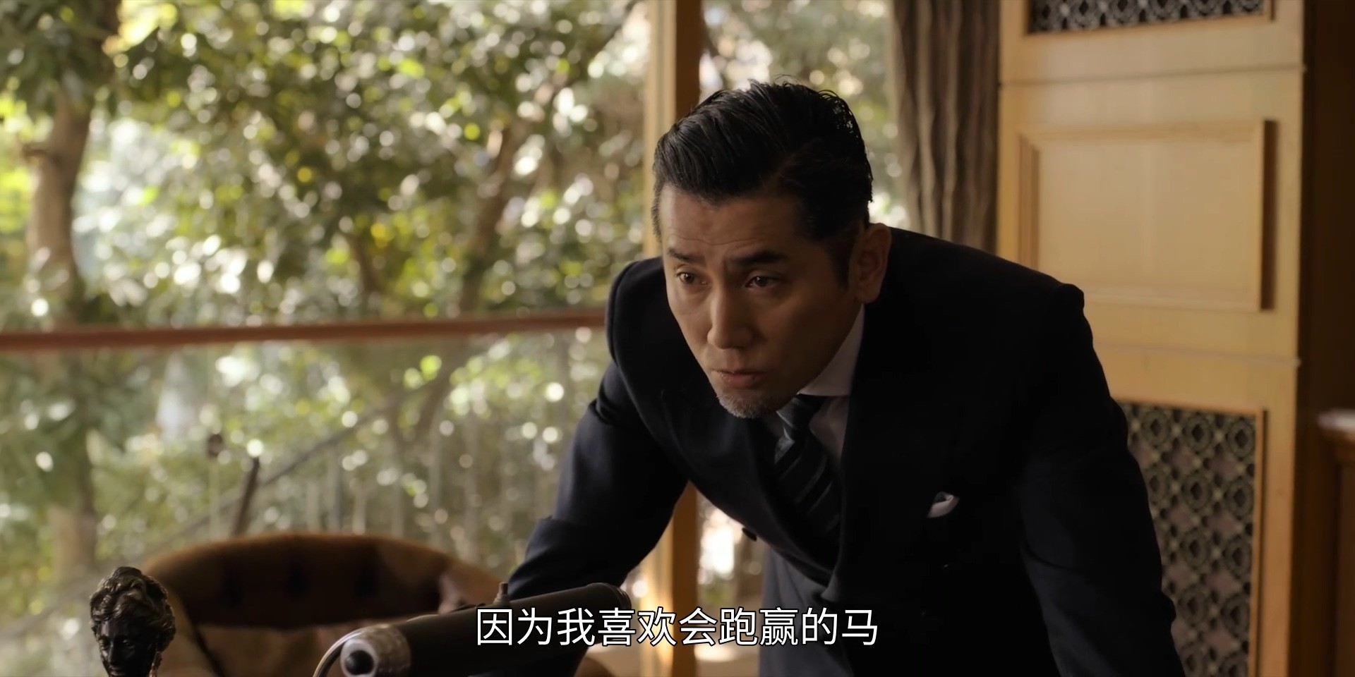 但是一开始倒了两杯威士忌那个可怜的死者,是背部中刀而亡。死者的家里人是黑帮B。而那把刀是黑帮A老大的传家宝刀。于是黑帮B到处散播是黑帮A做出这种凶残的事,还出于报复而搞出了餐厅的枪击案。好在枪击案发生时黑帮A老大(本木雅弘演的,剧中造型过于优雅英俊,不想让这个角色死。)本人没在现场。