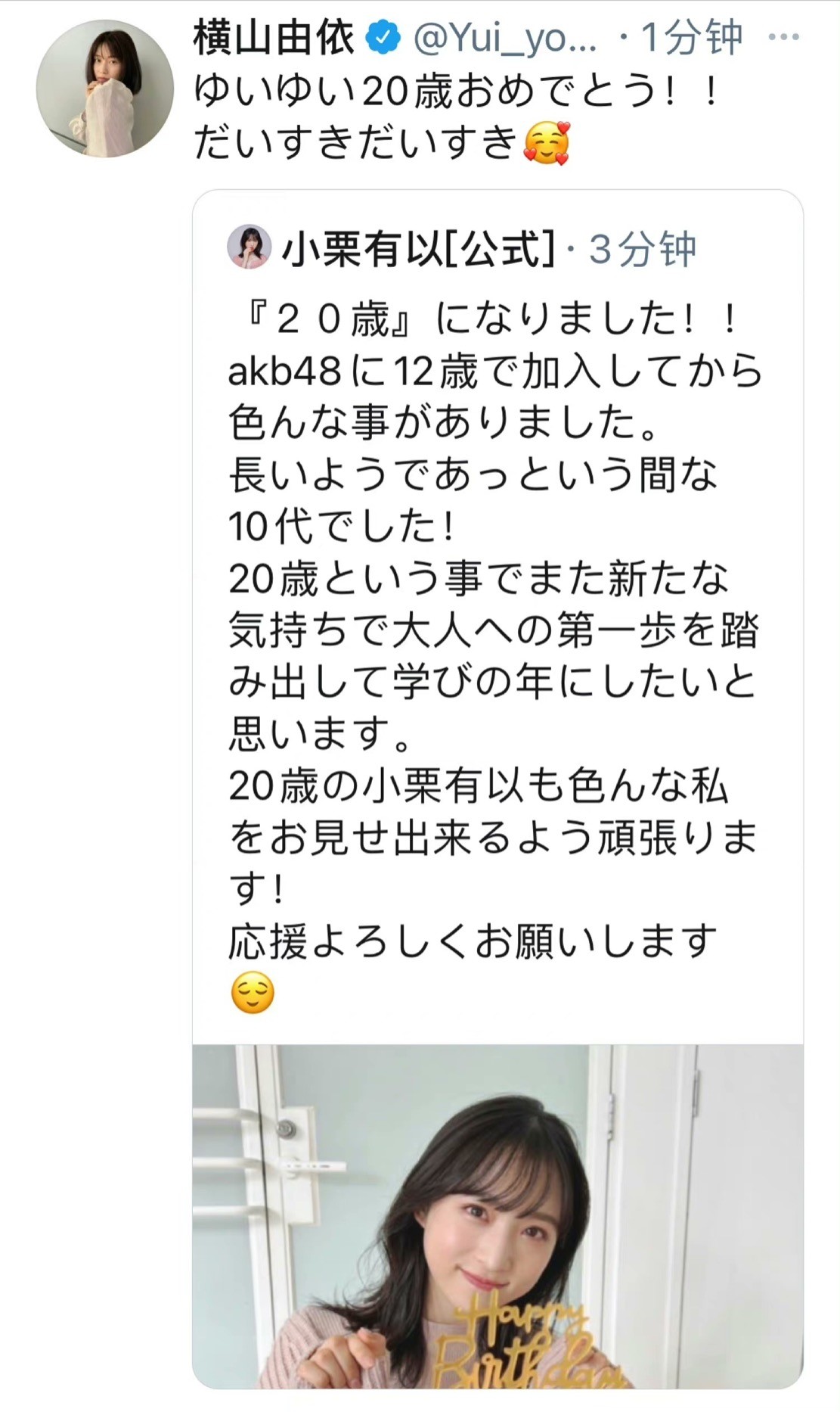 看到横山送祝福才意识到小栗原来这么小,才刚满20。