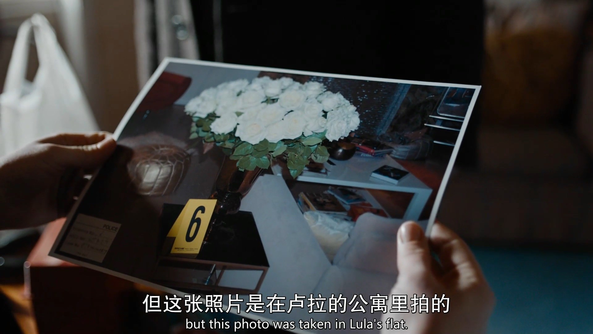 凶手从楼下公寓将这些花带上去。那天很容易混进去,很忙乱,有快递有清洁工。凶手逃跑时太匆忙,将花落在了受害人的房间。