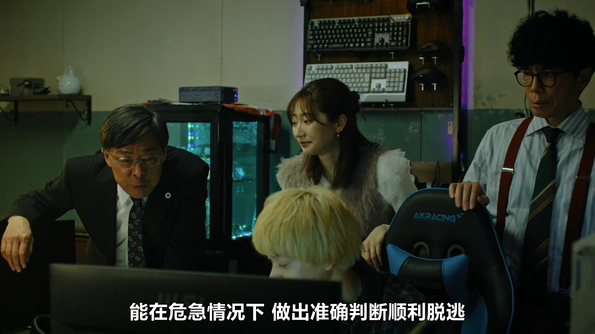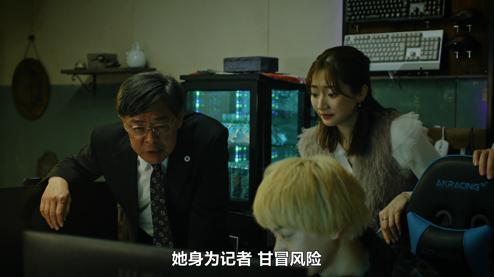 这一段好感人啊。大家都在透过监视器看着女记者靠智慧摆脱跟踪她的人,顺利逃走。伟大的媒体精神!