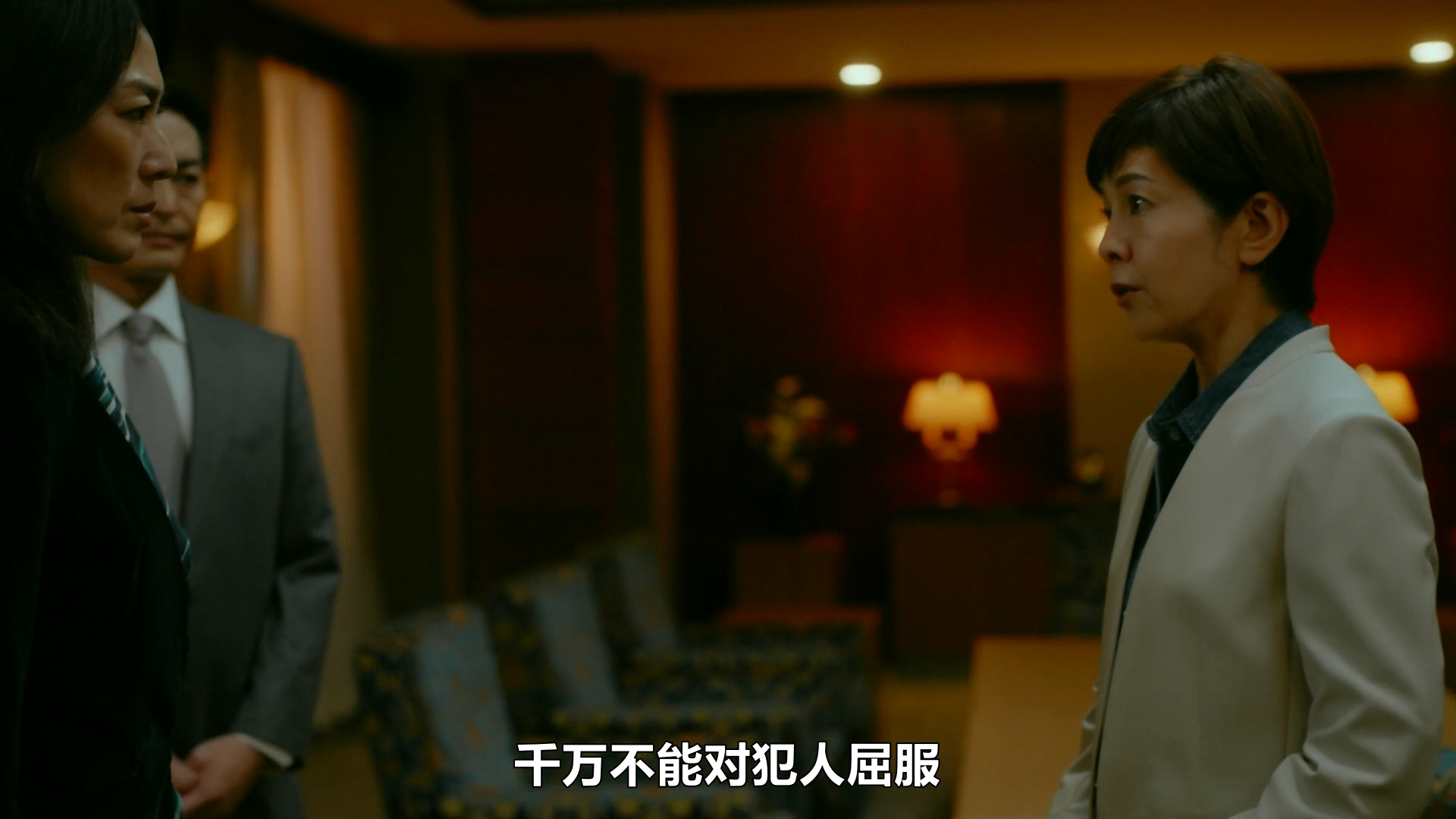 女主要去陪同首相了,应对绑架电话。女主真的有一种很可信很可靠的感觉。