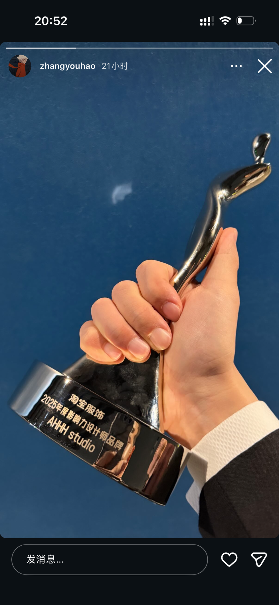 以为是什么奖呢定睛一看喷了,前几天和鹿还说起不知道此人在干啥,原来在专心卖衣服