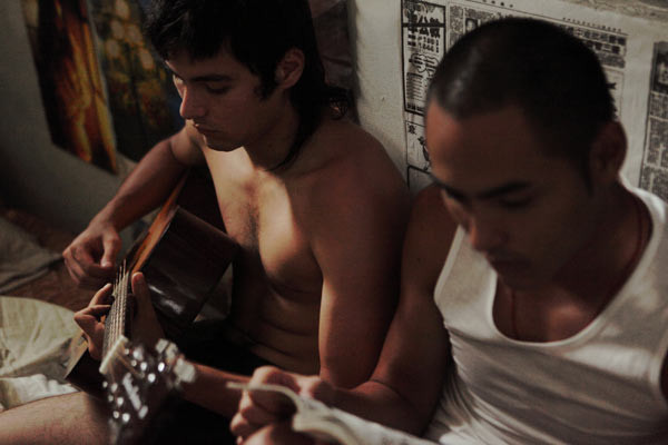 还是觉得这张拍得无敌了。。。一个在玩吉他一个在看漫画 # bl # 氛围感 # 出租屋(?) 给副CP也拍个