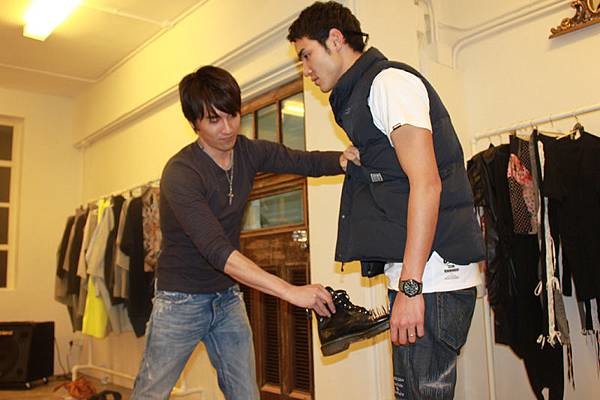 给老公试衣服中