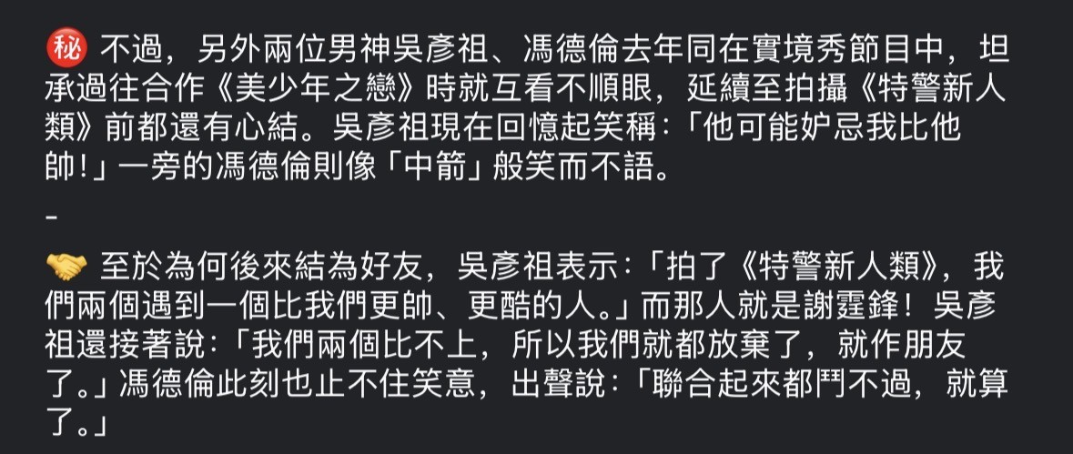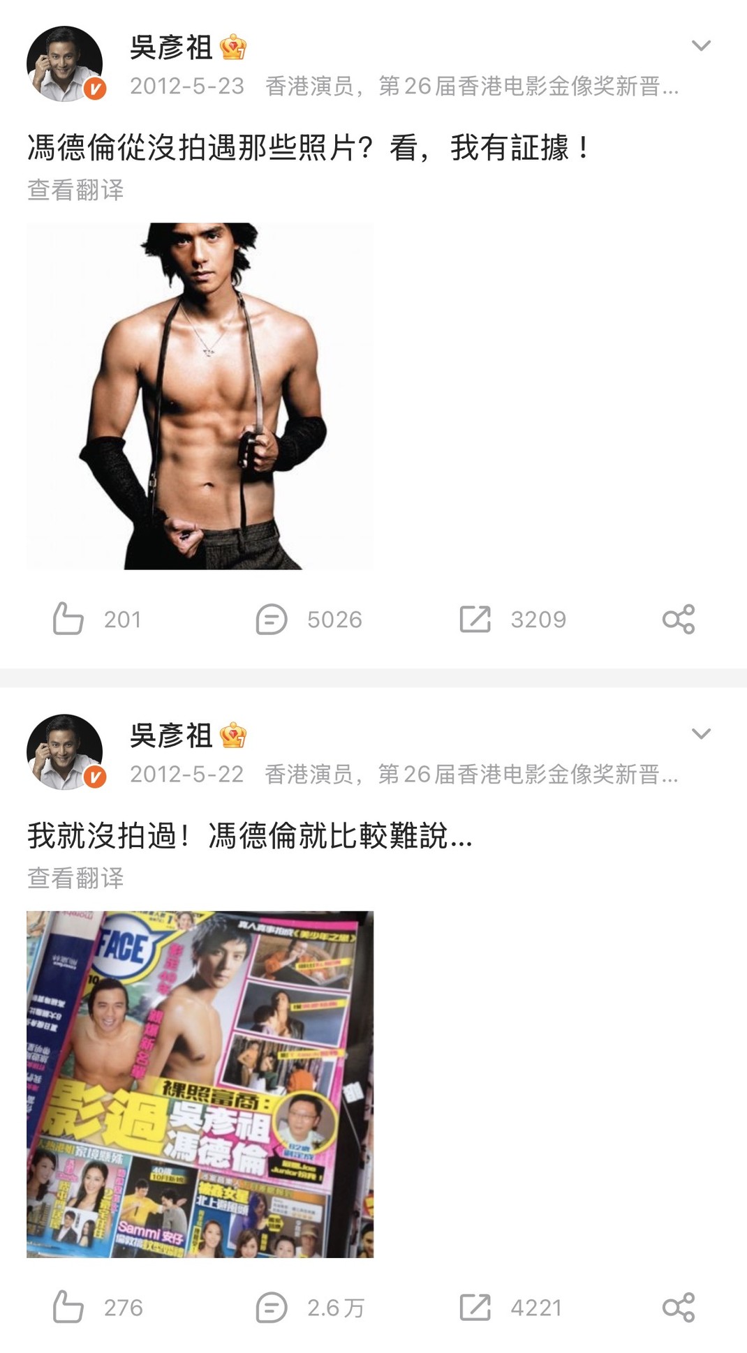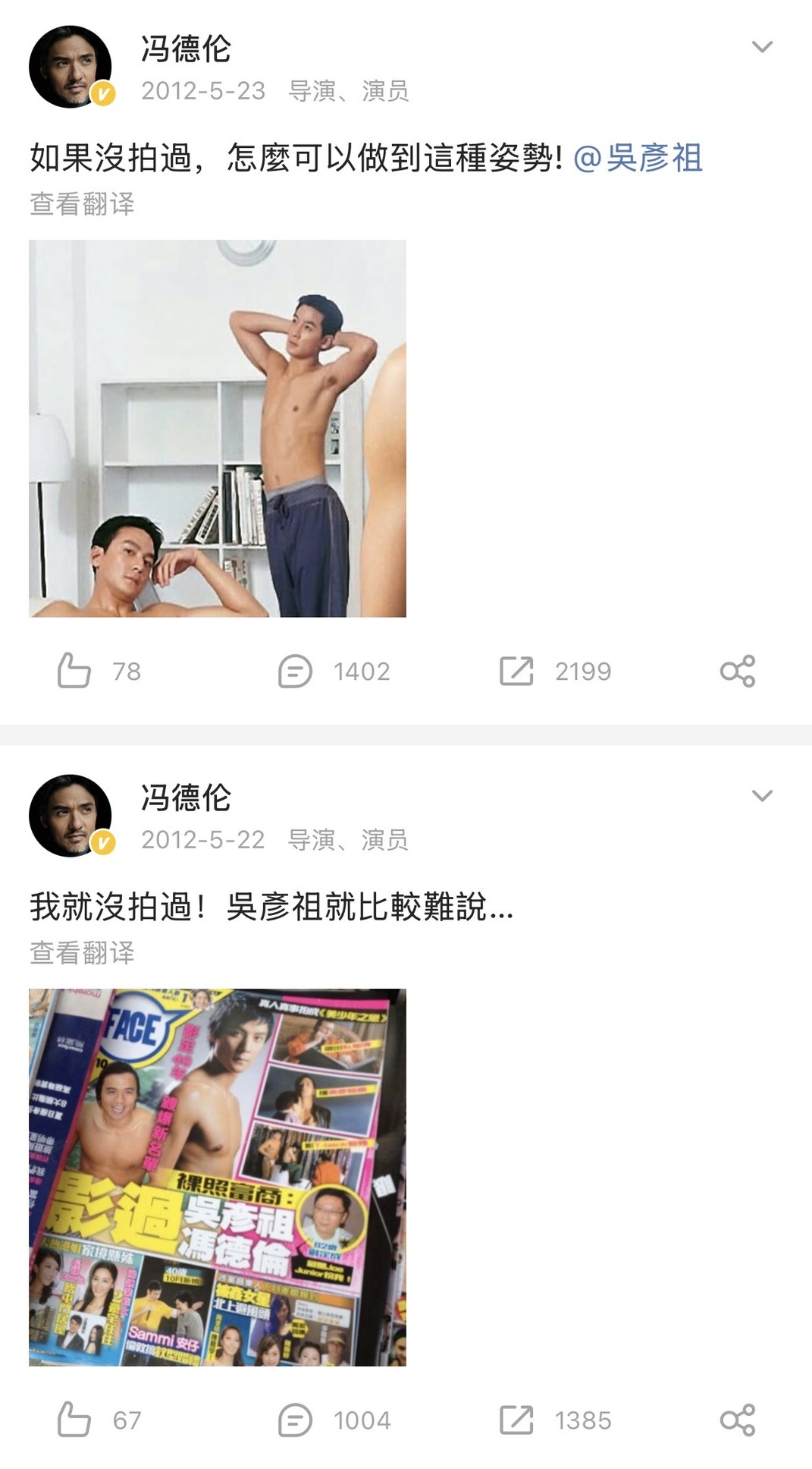 看到个荒原的幕后小冯要打阿祖一下,这配文看笑了,好奇美少年之恋里小冯给阿祖那一耳光拍了几个take,在床上翻滚肯定没有一次过吧因为中间有个镜头小冯穿着上衣下一帧衣服没了。然后他们在这个美剧的片场竟然用粤语交流