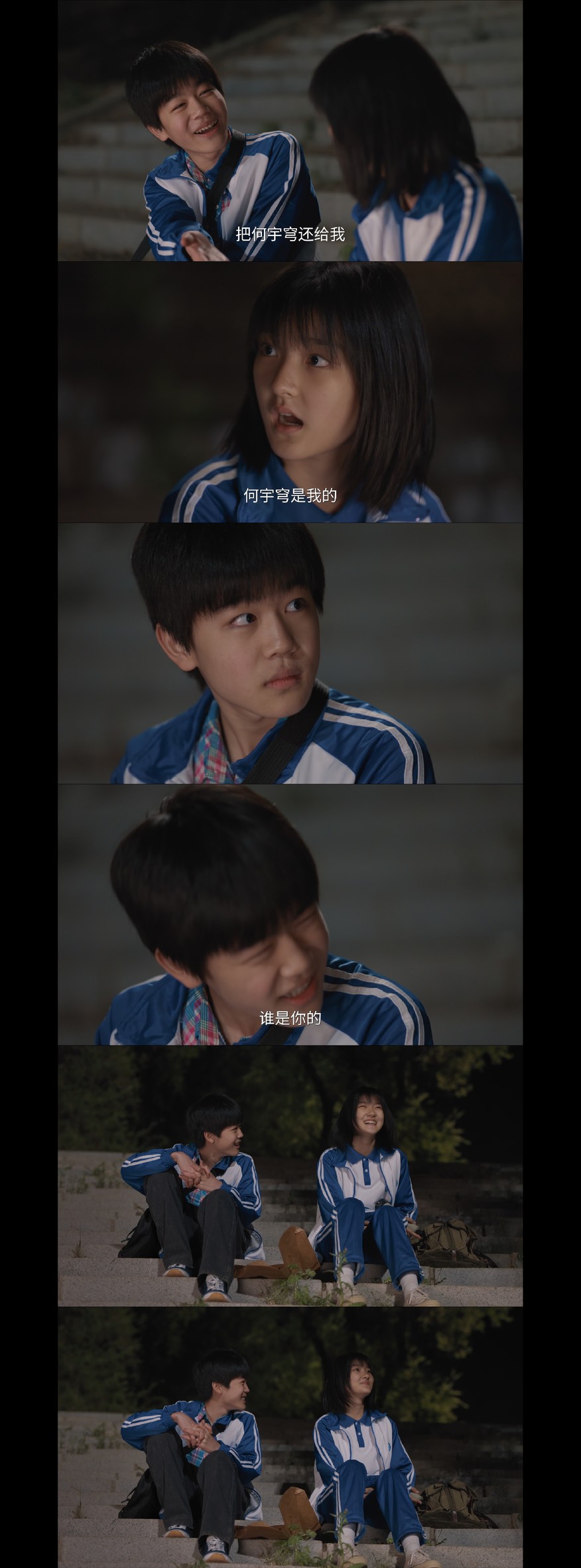 柏庶冒着反抗妈妈的风险夜里跑去找任小名被赶来的妈妈抓走,此时任小名正和何宇穹互相逗受伤的对方开心,这剧情似曾相识啊心动里金城武梁咏琪莫文蔚差不多就是这样的,你们让十五岁小孩儿演啥呢
