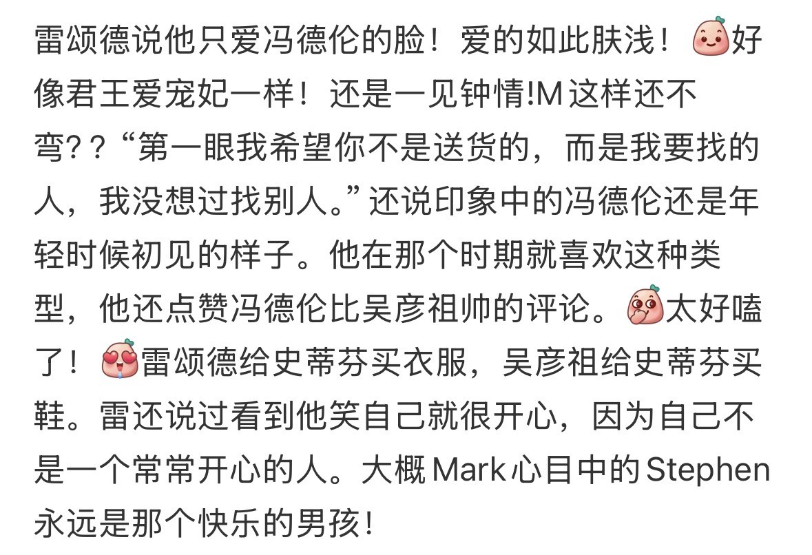 受不了直男的坦荡感了,刚还看到01年俩人代班主持节目念粉丝来信,有一封是他俩的同人 小冯:(对镜头)这个不能给你们看哦