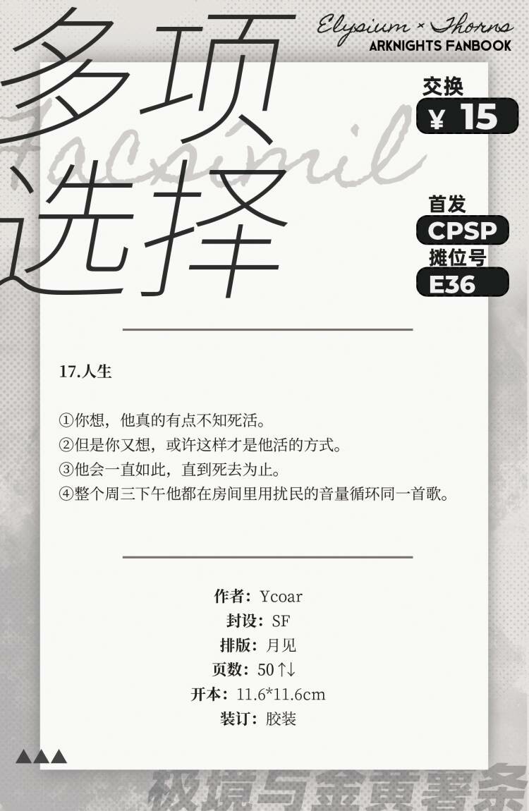 说到这个来象象打个广告 之前CPSP场贩的极刺本《多项选择》现在开通贩了捏,有兴趣的象友请: